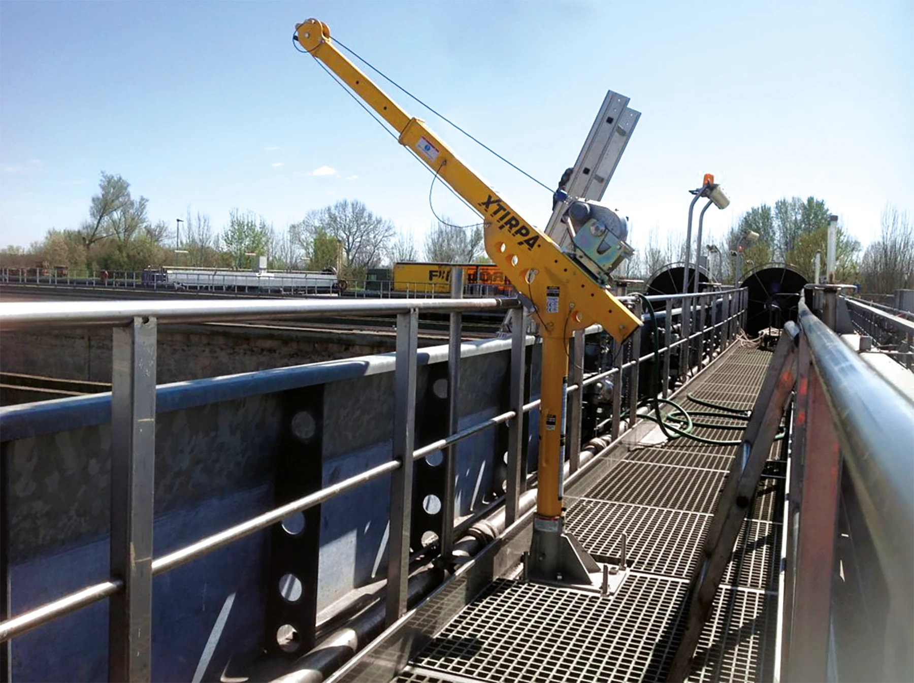 Le mât et le bras de potence peuvent pivoter à 360° lors d’une évacuation. Le mât peut être prolongé à l’aide de rallonges lorsqu’un adaptateur fixe est utilisé (sol ou mur).