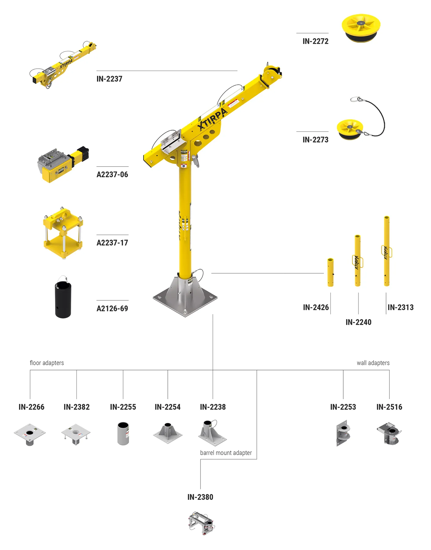 Fidèle à l’approche modulaire de Xtirpa™, l’IN‑8015 peut être combiné avec différents mâts, bases autoportantes, stabilisateurs en T associés à des chariots à contrepoids, ou encore des kits d’attelage voiture. Il prend en charge les équipements antichute, treuils et SRL Xtirpa™, permettant une configuration personnalisée selon le site. Cette modularité favorise la réutilisation des pièces, la rapidité de déploiement et la réduction des coûts.