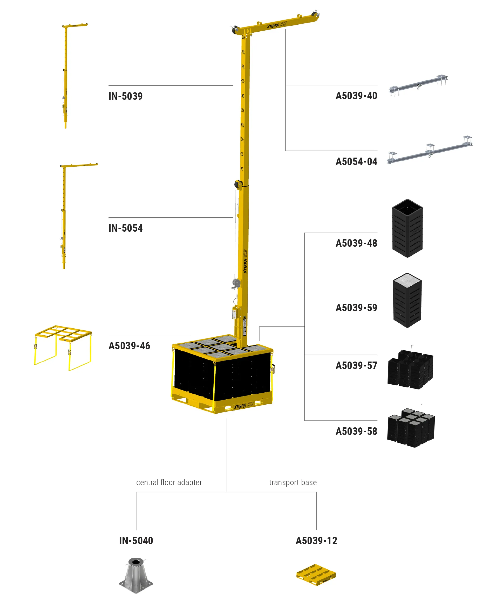 Conforme à l’approche modulaire Xtirpa™, l’IN‑8022 s’associe avec SRL de récupération, rails de glissement, et options de stabilisation (contrepoids ou bases). Il fonctionne en lien avec les systèmes XLT et permet de créer des configurations d’accès, de sauvetage ou de travail en hauteur selon les besoins spécifiques du chantier, tout en optimisant la réutilisation des composants.